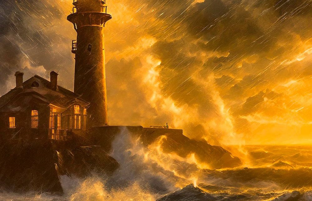 A lighthouse during a coastal storm can be an impressive and at the same time challenging image. The strong winds, roaring waves and the power of nature in such'a situation can be dramatic. Lighthouses are designed to stand firm against harsh weather conditions and act as beacons for ships to guide them safely through dangerous waters. Certainly, lighthouses are fascinating structures that have played an important role in navigation at sea throughout history. They are used to warn ships of dangerous shorelines and rocks, and also to determine a ship's position. Each lighthouse design is unique, with features such as colour patterns and light signals to distinguish them from each other.