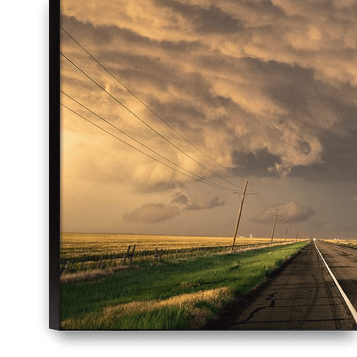Buy this landscape artwork Stormclouds crossing the road by Menno van der Haven on canvas, ArtFrame, poster and wallpaper, printed on demand in high quality.