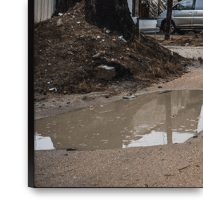 Het straatbeeld van Paramaribo na een tropische regenbui. Dit is wel een van de laatste zandstraten (het laatste deel van de Dr. J.F. Nassylaan) in Paramaribo. De meeste zijn ondertussen geasfalteerd. Deze foto is van mei 2015. Mei en juni zijn de maanden met de meeste regendagen (Grote regentijd).