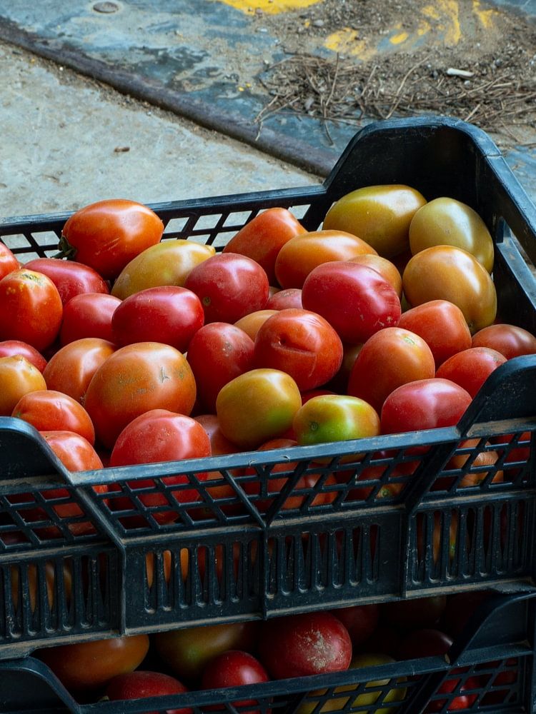 These crates of tomatoes looked lost and that is what attracted me to them. The tomatoes stand out very nicely from the picture because of their different colors.
