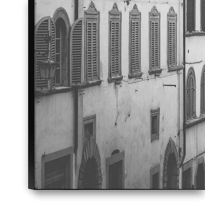 Black and white Street scene of Anghiari, Italy, Tuscany.