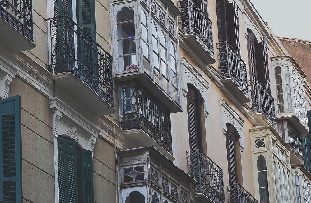 The colourful and cosy facades of Malaga's inner streets. In soft colours with natural daylight on a sunny spring day. The sun lights up the top floor for an extra playful effect. The nicest and most beautiful corners can be found once you turn into the lesser-known side streets. Each façade has its own unique details.
