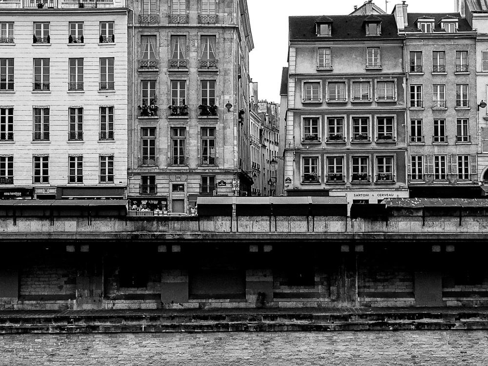 A row of houses along the waterfront in Paris.