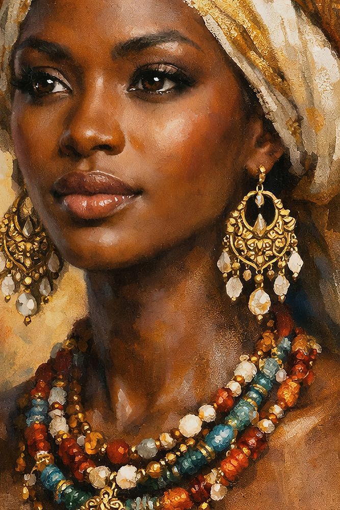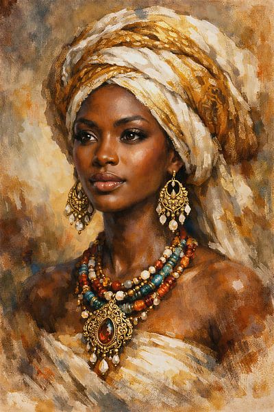 In this portrait, strength is not in expression, but in form. The soft lines, warm earth tones and layered textures build a quiet determination. Her posture and gaze carry history, while at the same time she stands fully in the now. Strength in Contours shows identity as something unspoken but unmistakably present.