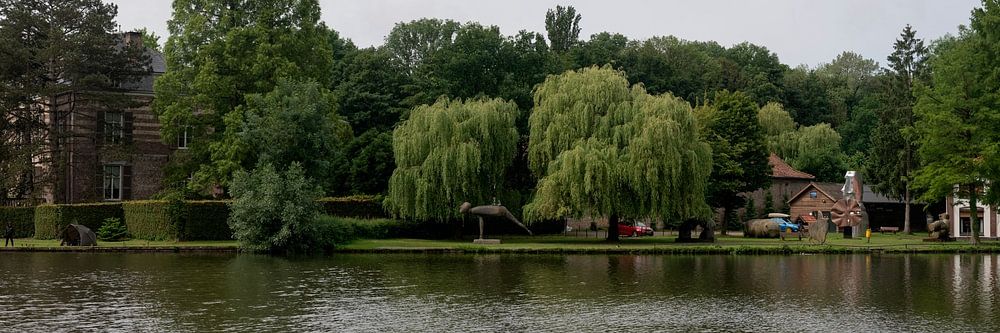 Landgraaf The Netherlands Landscaped ponds of Kasteel Strijthagen estate. Stitched panorama.pond, reflection, castle, stately home, Limburg,