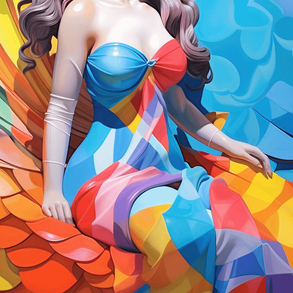 This painting from the 'Colored Stripes' collection is a mesmerizing display of chromatic harmony. Bold, colorful stripes intersect and intertwine, creating a dynamic composition that plays with the viewer's perception of color and space.