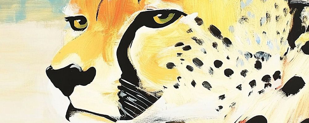 Strong Cheetah With Spots - This painting shows a cheetah with a strong, distinct look, with its striking spots and intense yellow eye colour dominating the artwork, against a background in warm tones.