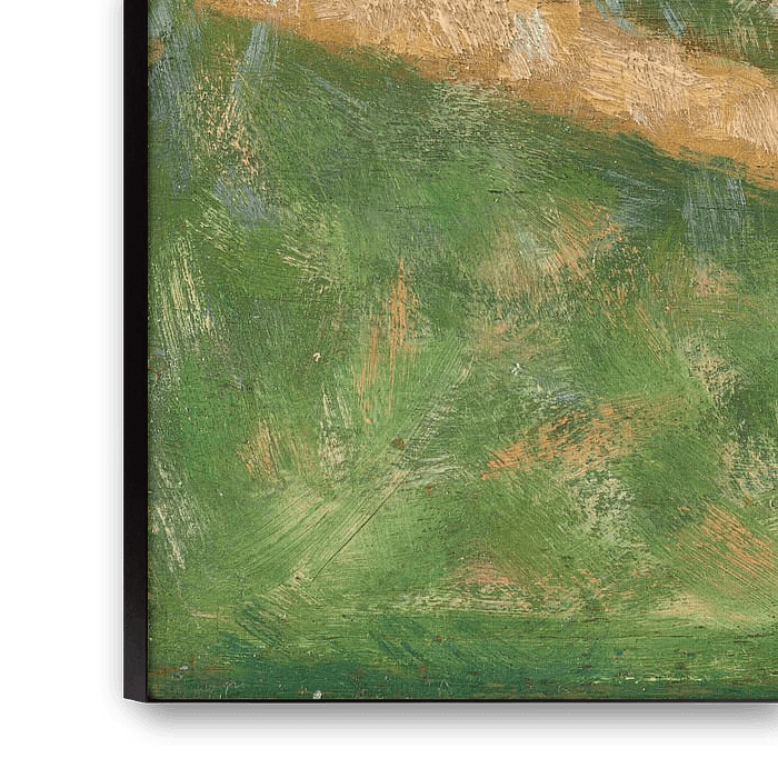 This oil sketch is one of many preparatory studies Seurat made for his monumental painting Bathers at Asnières (1883-84), depicting men leisurely bathing in the Seine near an industrial suburb of Paris. Seurat borrowed the brilliant colors of Impressionism to suggest outdoor light, but added structure by emphasizing basic geometric shapes and firm outlines. As a leader of the movement to reform Impressionism, his style became known as Neo-Impressionism.