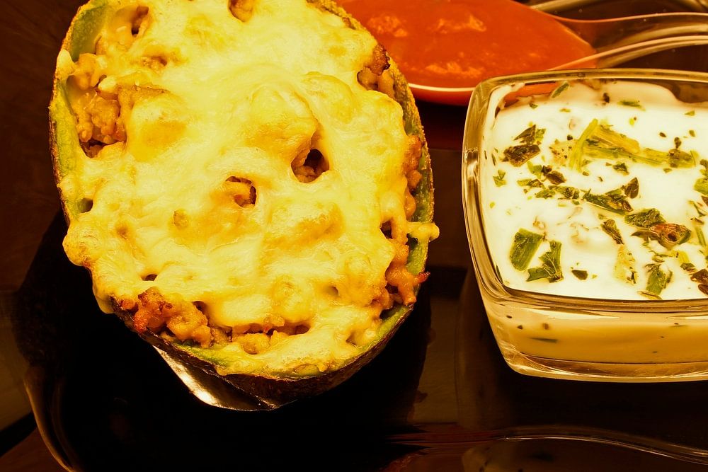 About "Stuffed avocado with minced meat and cheese au gratin"