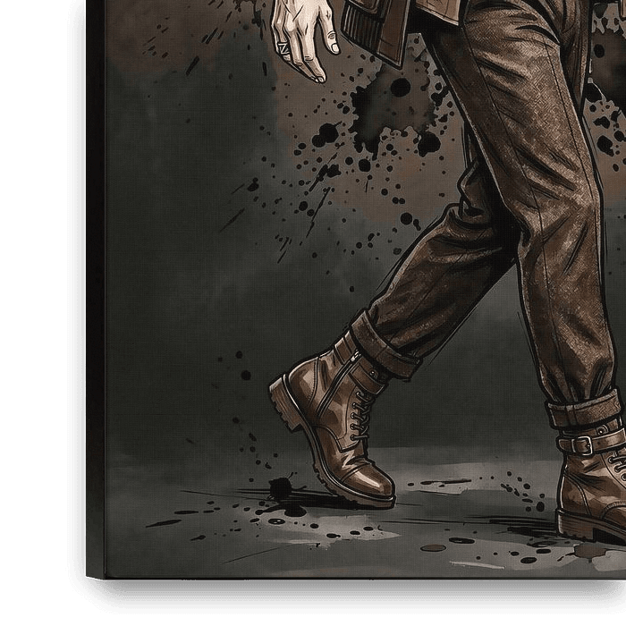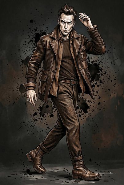 A digitally painted man poses confidently in vintage brown clothing.