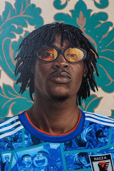 Buy this portrait Stylish Man in Anime Jersey by Damilare Jamiu on canvas, ArtFrame, poster and wallpaper, printed on demand in high quality.