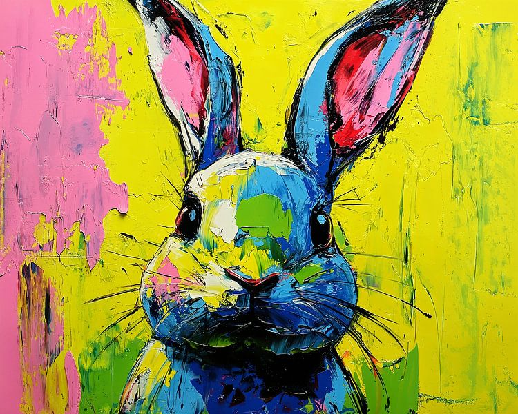 Buy this abstract artwork Summer Rabbit Colour | Cheerful Rabbit With Ears by Abstract Painting on canvas, ArtFrame, poster and wallpaper, printed on demand in high quality.