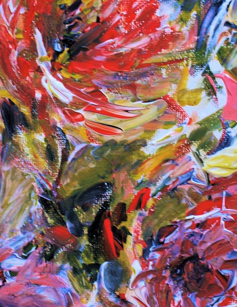 Merrily they point their flowers to the sun and they laugh exuberantly. The summer is joy. A colourful abstract acrylic painting.
