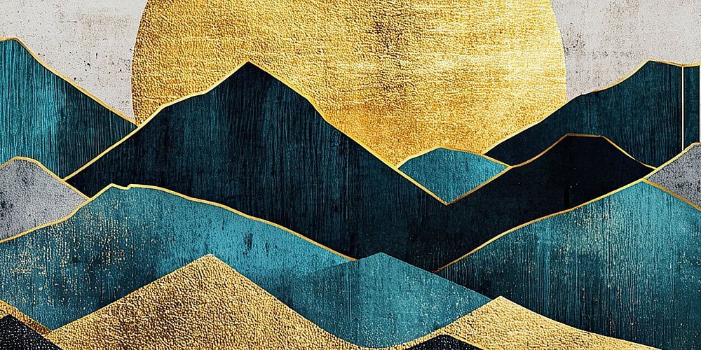 Inspired by Japanese painting, this painting shows an abstract landscape with mountains and the sun or moon. It creates a powerful atmosphere that radiates tranquillity at the same time.