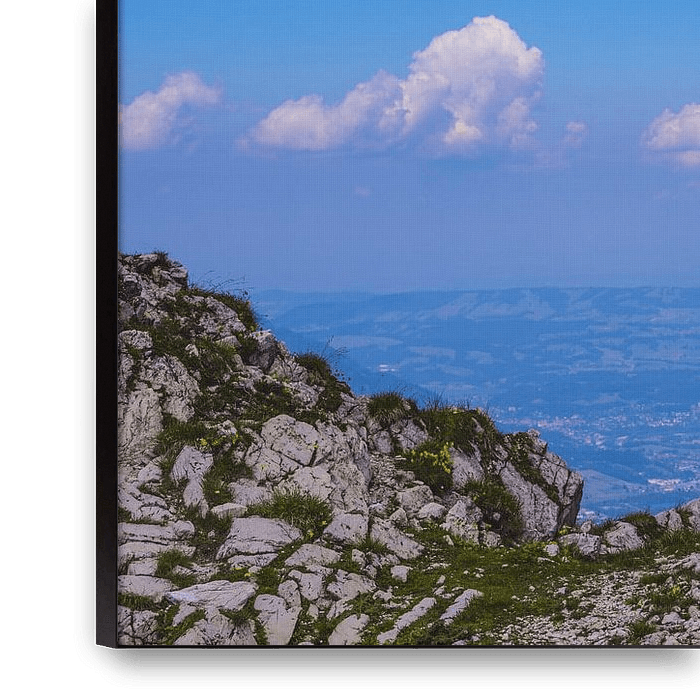 Your chosen art on canvas, stretched in an aluminum frame. Quick and easy to change for a fresh look and exactly as you want it.