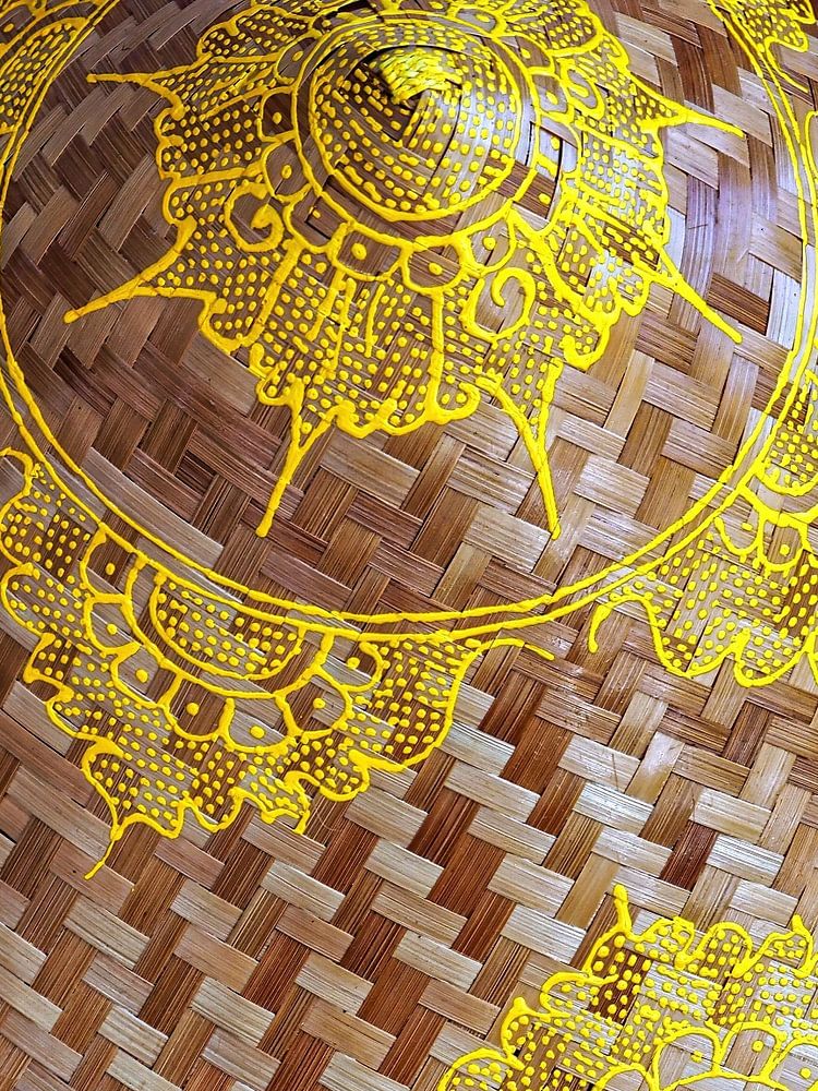 Pointed hats made of reed, typical for Asia and often worn by farmers in rural areas. These hats are specially made for tourists.