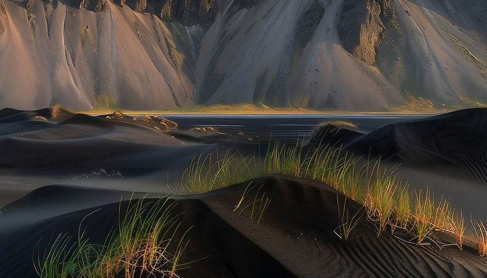Buy this landscape artwork Sun kisses for Iceland's cliffs by Arndt-Christoph Föcks on canvas, ArtFrame, poster and wallpaper, printed on demand in high quality.