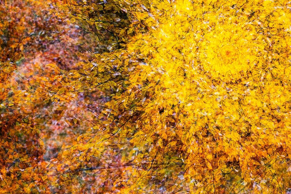 Buy this abstract artwork Sun wheel made from autumn leaves by Daniela Beyer on canvas, ArtFrame, poster and wallpaper, printed on demand in high quality.