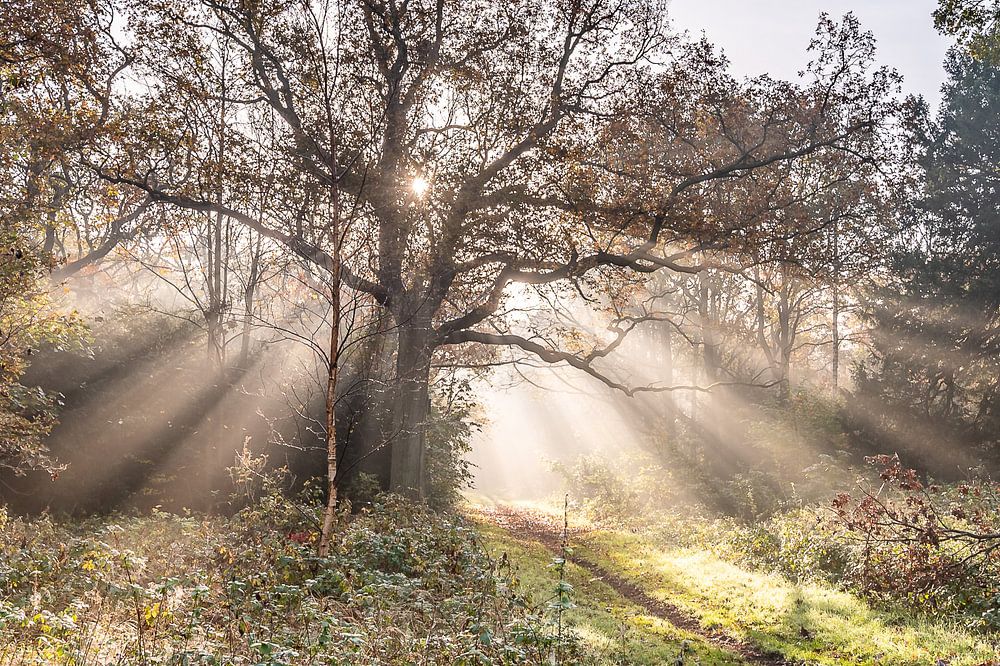 Buy the photo Sunbeams in the forest by Adriaan Westra on canvas, ArtFrame, poster and wallpaper, printed on demand in high quality.