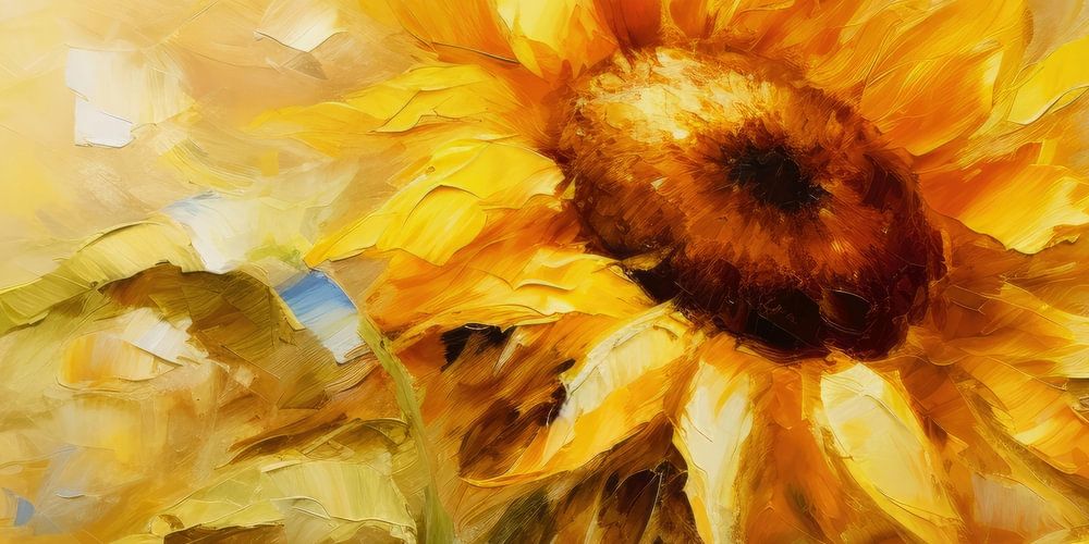 Motif of a sunflower with the appearance of a painting.