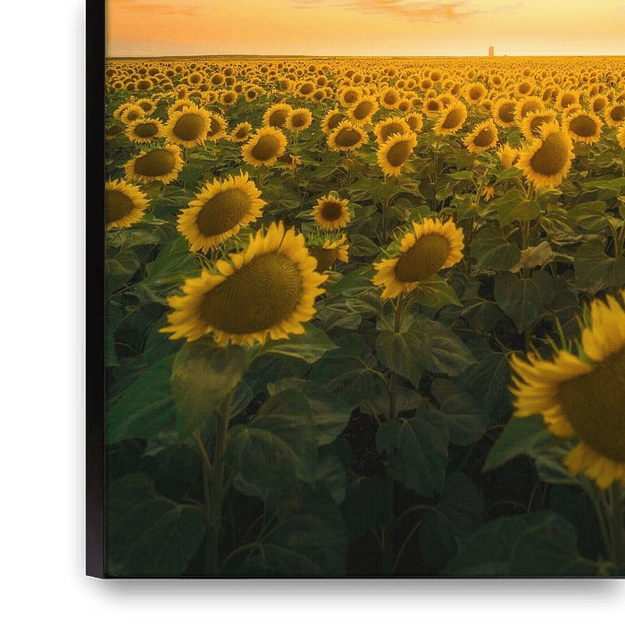 Buy this landscape artwork Sunflowers at sunset by Andy Troy on canvas, ArtFrame, poster and wallpaper, printed on demand in high quality.