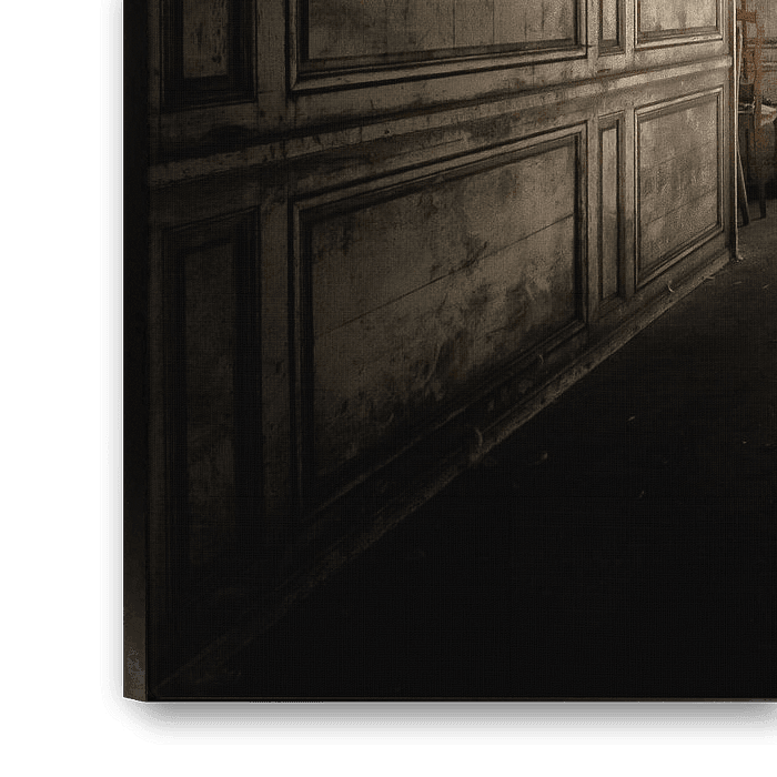 Dark corridor with panelling in an old French castle Urbex
