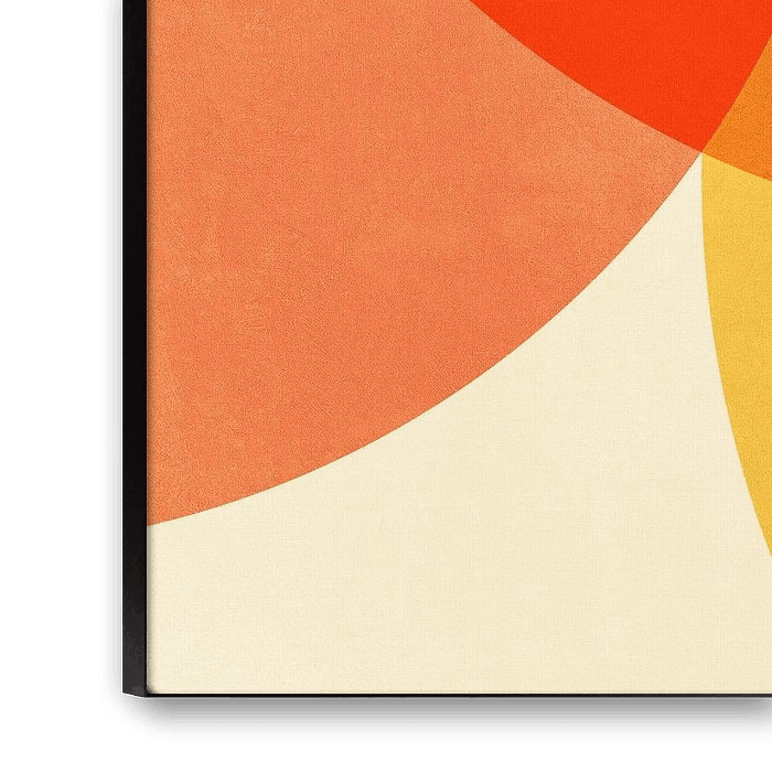 Abstract and minimalist circular geometric shapes with vibrant and contrasting colors.