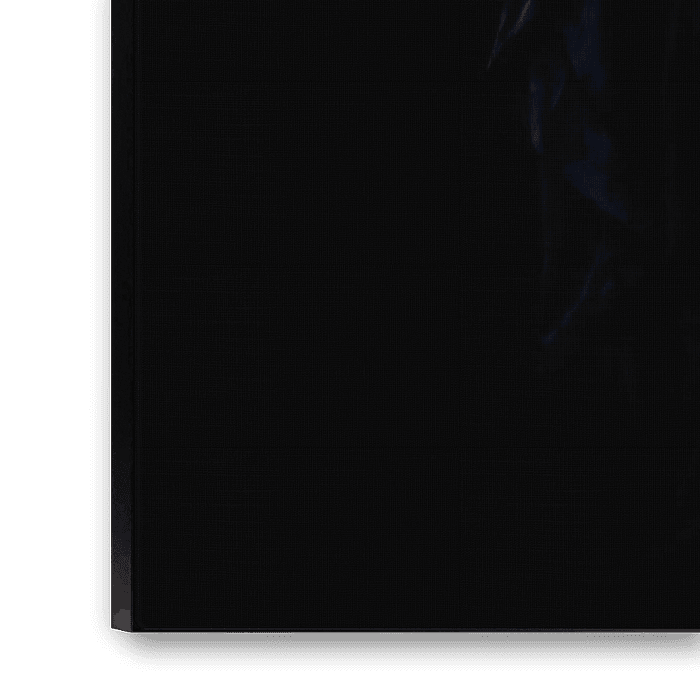 The light, which is warm and golden, falls mainly on the top of the statue: the shoulders, part of the face and the outstretched arms. This subtly brings out the contours and some details of the drapery and facial features. The rest of the statue, including the underside, disappears completely into the darkness.