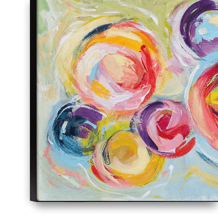 Summery floating soap bubbles in soft, pastel shades. Just reading the description is enough to make you drift off gently into this peaceful scene. Using wild, loose brushstrokes, I painted these shapes intuitively, creating a cheerful atmosphere that draws you in. Outdoors. Towards the sun and warmth. Towards the memory of playing with…