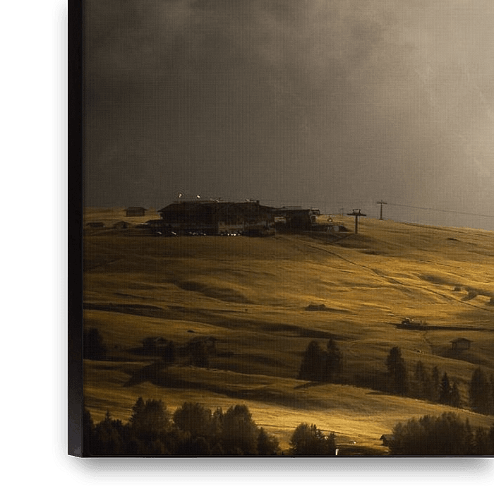 Buy this landscape artwork Sunrays @ Alpe di Siusi by Juul Hekkens on canvas, ArtFrame, poster and wallpaper, printed on demand in high quality.