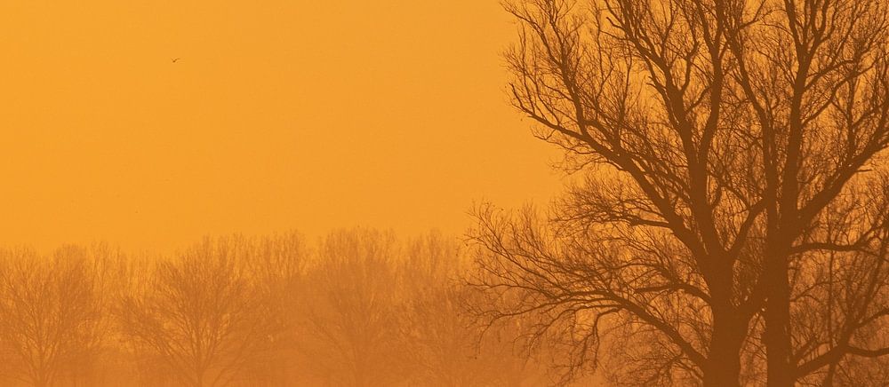 A beautiful sunrise with beautiful light and a little bit of fog which creates a wonderful atmosphere. I took this photo in the surroundings of Culemborg during the golden hour. Everything is falling together perfectly and creates a wonderful atmosphere. You can still see a part of the meadow and a row of trees behind it. This gives it a nice play of lines and a beautiful depth.