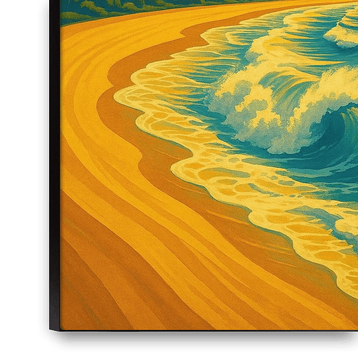 This vibrant Gold Coast illustration captures the energy, warmth, and iconic beauty of one of Australia’s most loved coastal destinations. Rendered in a refined Art Deco style, the artwork brings together rolling turquoise waves, sweeping golden sands, and the sharp modern skyline that rises proudly along the horizon. The sun dominates…
