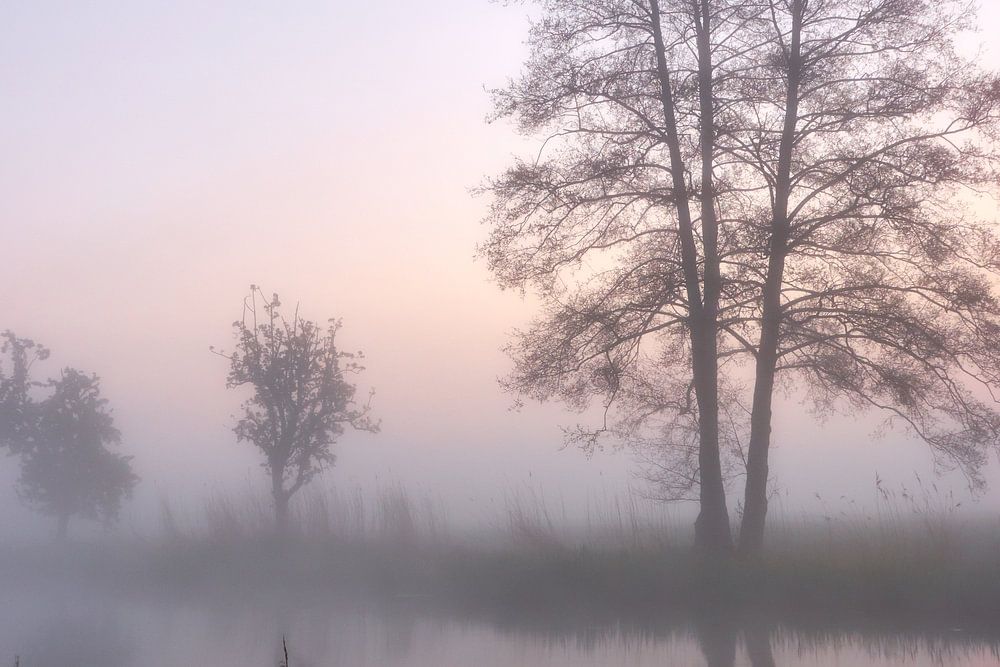 A quiet morning at the Dutch Waterline. Low temperature, little wind and high humidity, so foggy during sunrise. The Nieuwe Hollandse Waterlinie (NHW) is an important line of defense in Dutch history. Next to the water, there are old whimsical fruit trees and the turnip seed is in full bloom. The serene tranquility is a boon.