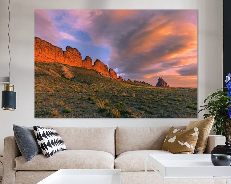 Buy this landscape artwork Sunrise at Shiprock by Henk Meijer Photography on canvas, ArtFrame, poster and wallpaper, printed on demand in high quality.