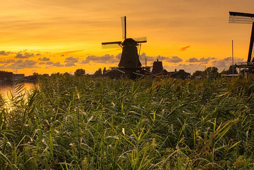 Buy the photo Sunrise at Zaanse Schans by Anges van der Logt on canvas, ArtFrame, poster and wallpaper, printed on demand in high quality.