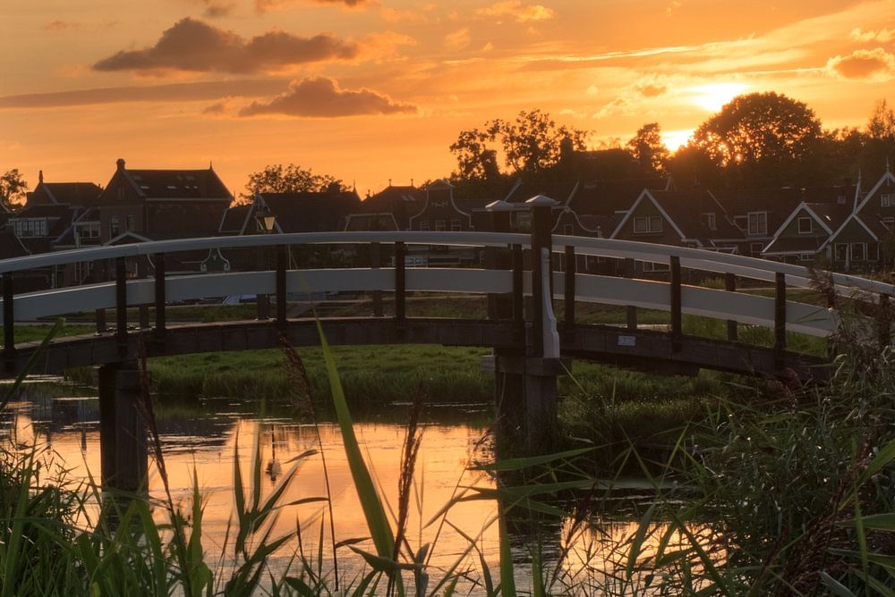 The Zaanse Schans is a historic Zaanse neighbourhood in the municipality of Zaanstad established in 1963, with national monumental wooden buildings and industrial mills from the Zaan region relocated there. Over time, it has been complemented by several cultural-historical museums, craft shops and restaurants. It is located in the Kalverpolder, a protected peat meadow landscape on the Zaan, opposite the village of Zaandijk. This architectural reserve for Zaanse timber construction is a protected village sight because of its architectural-historical and scenic value. It developed into an international tourist destination with several million visitors every year.