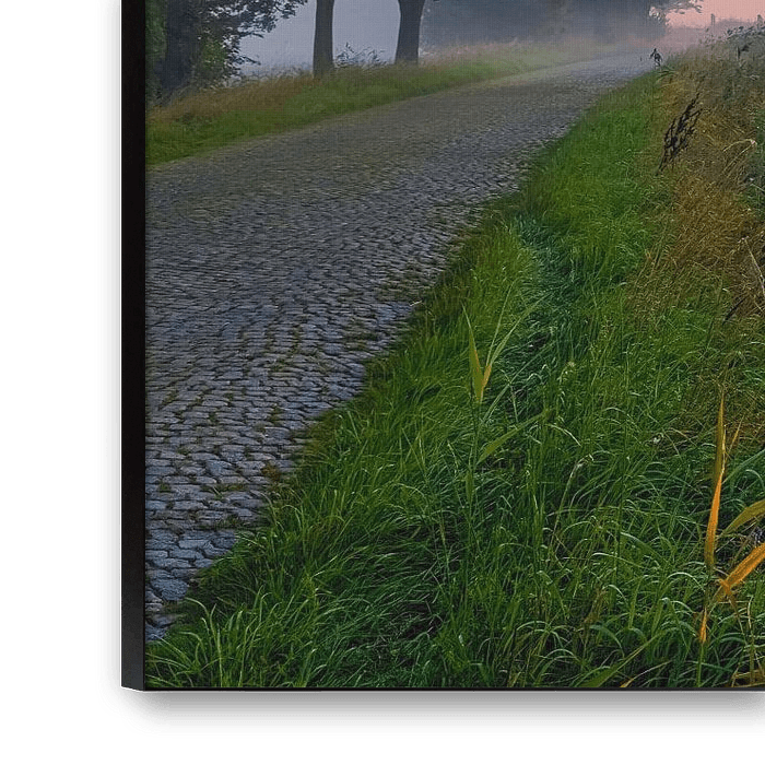 A horizontal photo of a beautiful summer morning with a layer of fog during sunrise at the Krimstermolen, located on the Boterdiep in the village of Zuidwolde in the province of Groningen.