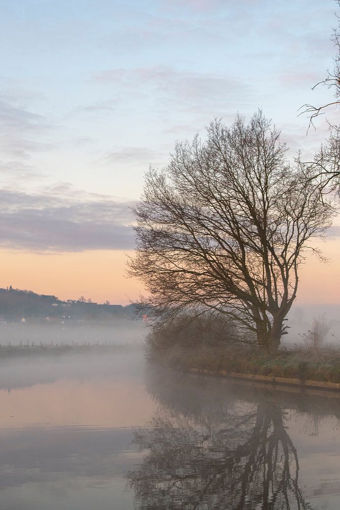 Sunrise on the Dender in Schendelbeke, Geraardsbergen, on a foggy day. Image is 5045 pixels by 7581 pixels