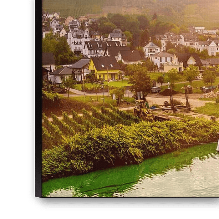 Buy this landscape artwork Sunrise at the Mosel by Günter Albers on canvas, ArtFrame, poster and wallpaper, printed on demand in high quality.