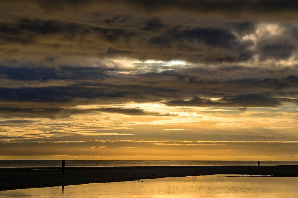 About "Sunrise at the beach at Texel island with a storm cloud approaching"