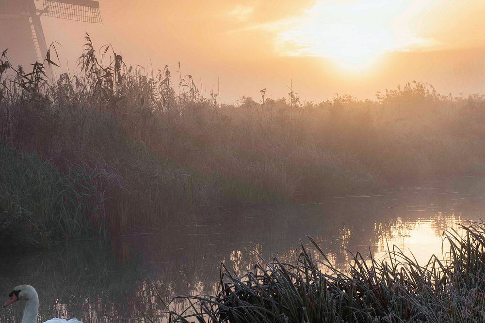 Buy the photo Sunrise in Kinderdijk by Lisette Haneveer on canvas, ArtFrame, poster and wallpaper, printed on demand in high quality.