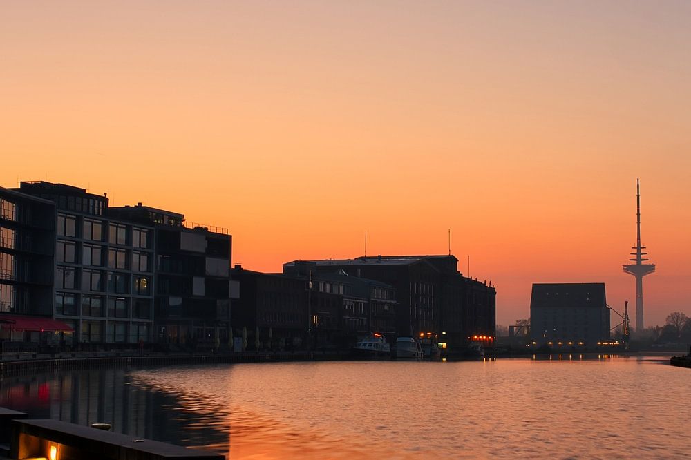 This picture shows the sunrise at the harbour in Münster.