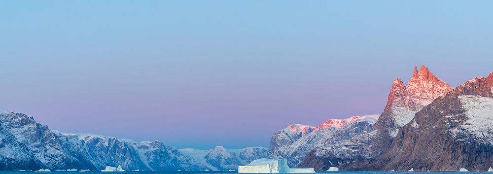 A sunrise in Scoresby Sund, more precisely the Øfjord north of Scoresby Sund in Greenland. The cold and geographical location provides a nice Artic coloured sky in the background.
