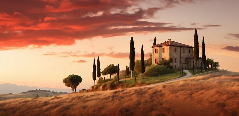 Buy this landscape artwork Sunrise in Tuscany by fernlichtsicht on canvas, ArtFrame, poster and wallpaper, printed on demand in high quality.