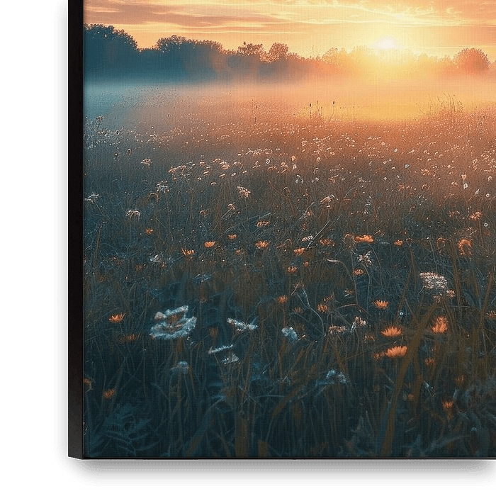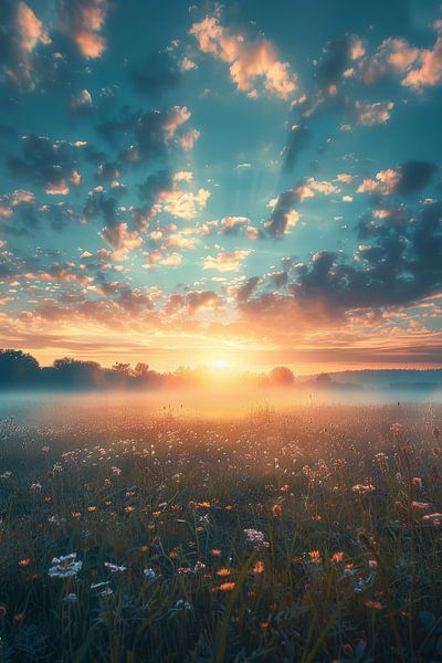 A quiet morning unfolds over a field full of wildflowers, where the first rays of sunshine gently pierce the mist. The sky takes on shades of blue and gold, whilst clouds slowly lighten in the dawning light. Everything exudes peace and space; the world seems to stand still for a moment in this fragile moment between night and day. The…