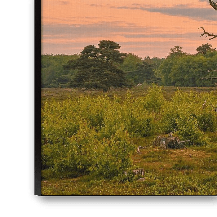 A 16:9 photo of a sunrise in the De Strubben-Kniphorstbosch nature reserve, part of the Drentsche Aa National Park.