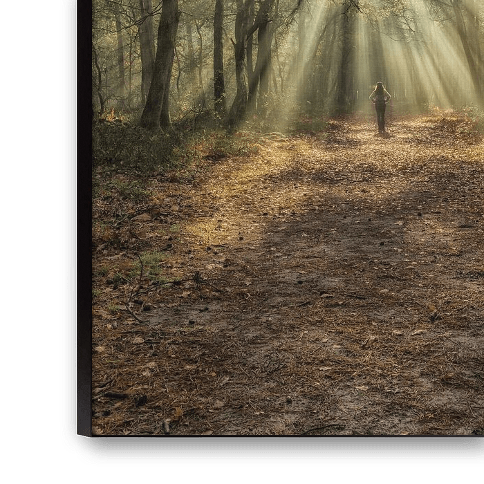 During an autumn walk in the Speulder forest, the sun just rises between the trees and shines through the mist and leaves creating fantastic lighting effects.