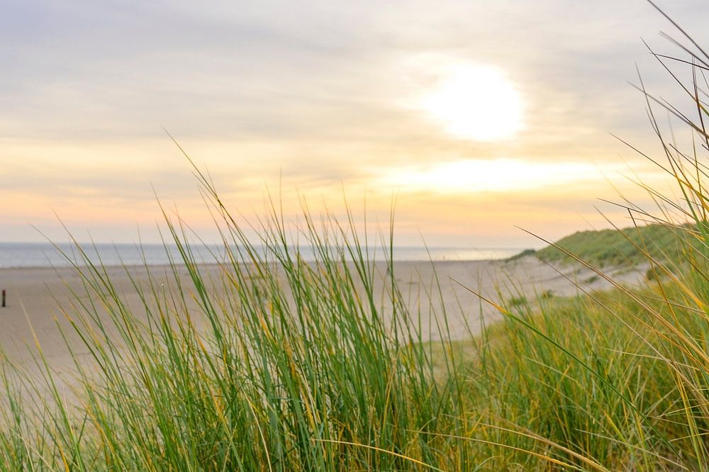 Sunrise in the dunes on Texel island in the Wadden Sea region at the North point of the island facing the Wadden Sea and Vlieland.