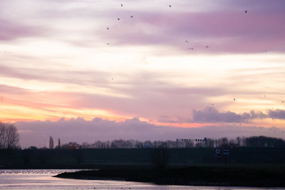 Buy this bird art Sunrise on the IJssel by Linda Schellevis on canvas, ArtFrame, poster and wallpaper, printed on demand in high quality.