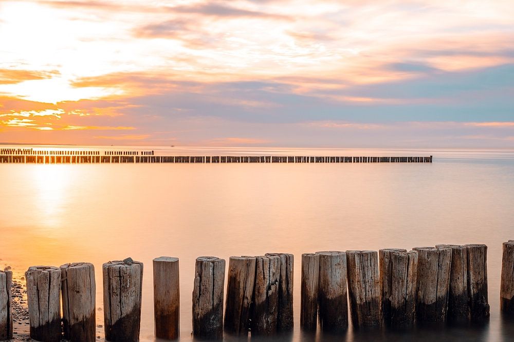Sunrise on the beach Ghost Forest Nienhagen on the Baltic Sea, Baltic Sea coast, Mecklenburg-Western Pomerania, Germany